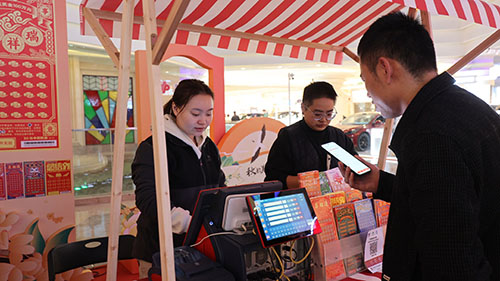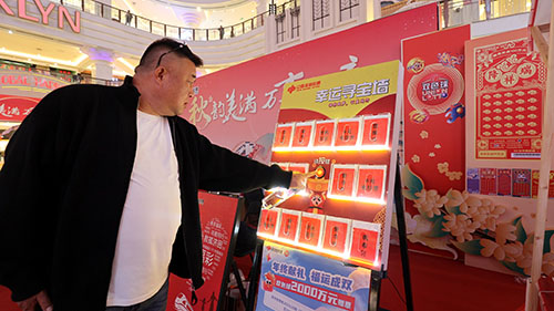 中奖百分百,好运滚滚来。抽奖区人流涌动,好不热闹。购买了电脑票和刮刮乐的顾客们,来到抽奖机前,按下红色按钮启动抽奖程序。等待的间隙,围观人群中不时发出阵阵加油声,希望抽奖顾客能抽到自己心仪的奖品。“中了中了!真的中了保温杯!助力成功!”惊喜的欢呼声在现场回响。问答区的人气也十分高涨。市民朋友们摘下选定的问题纸片后,随即来到问答区作答抽奖。“太幸运了!我和朋友刚刚关注公众号领了两盒纸巾,正愁拿着逛街不方便呢。这个帆布袋可解了我俩的‘燃眉之急’了!”答对问题的李女士(化名)接过抽中的帆布袋,喜滋滋地对工作人员说。