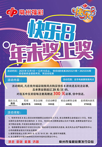 相约快乐8,向快乐出发。为回馈广大购彩者对快乐8游戏的喜爱与支持,常州福彩推出快乐8游戏年末奖上奖活动,为您生活增福添喜。