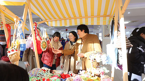 现场的公益集市,一件件由残障朋友制作的钩编作品、帆布包等手工艺品整齐陈列,每一件都凝结着他们的心血与对生活的热爱,吸引不少居民驻足选购。