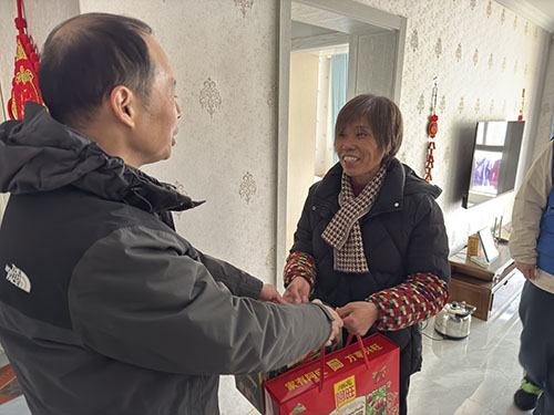 春归大地,福暖人间。2月11日上午,常州市福彩中心与“周末关爱”栏目组一道走进新北区三井街道飞龙社区,开展“周末关爱·爱在福彩”新春慰问活动,向社区的两户急难家庭送上油、牛奶、坚果、饼干等慰问品和满满的新春祝福。